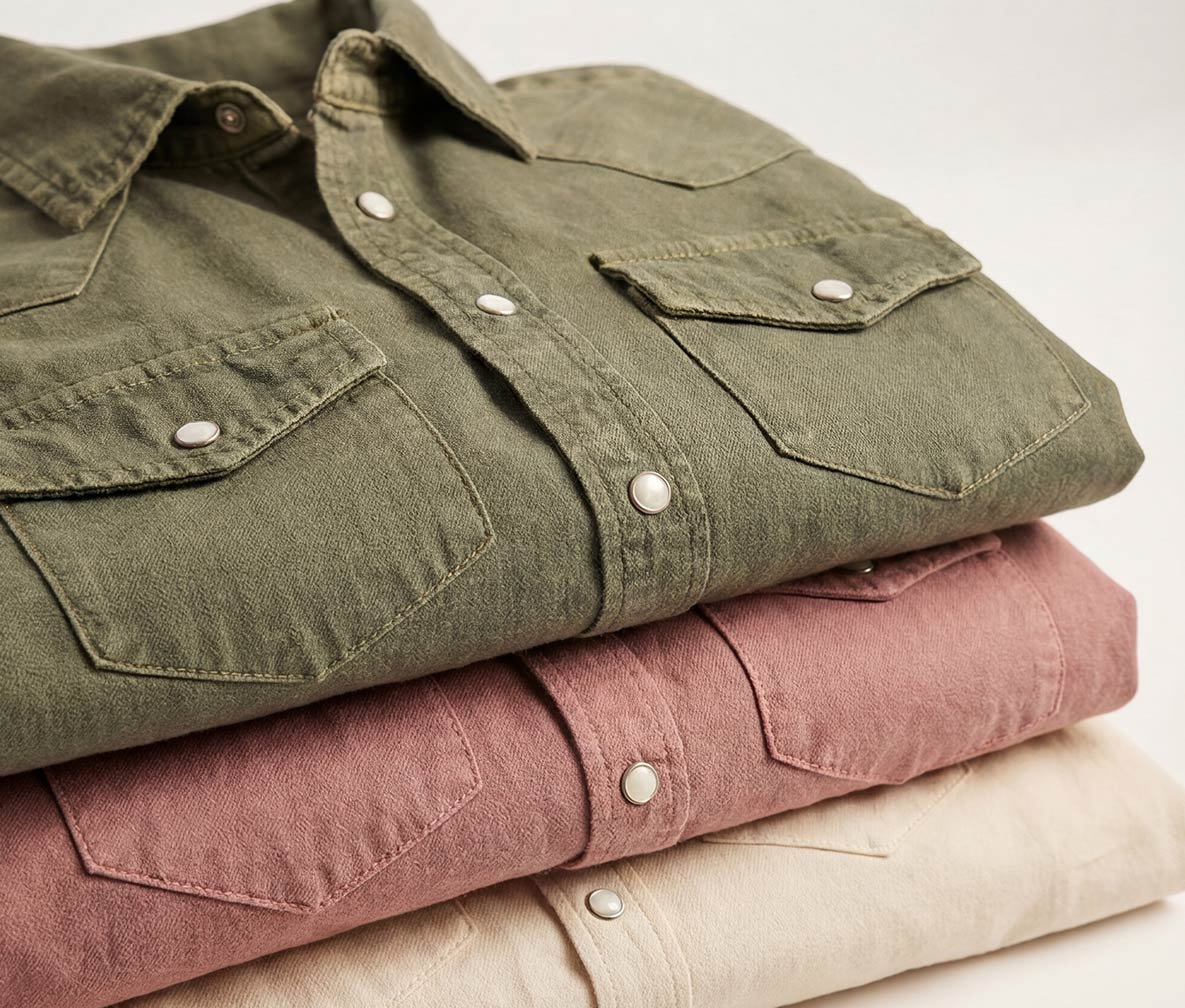 Inspired by classic western styling, this shirt is garment dyed for depth of color and a naturally broken-in feel. Made from a soft, breathable fabric, it features a flattering fit with timeless western details. Versatile and easy to wear, it’s perfect for casual days, layering, and seasonless styling.